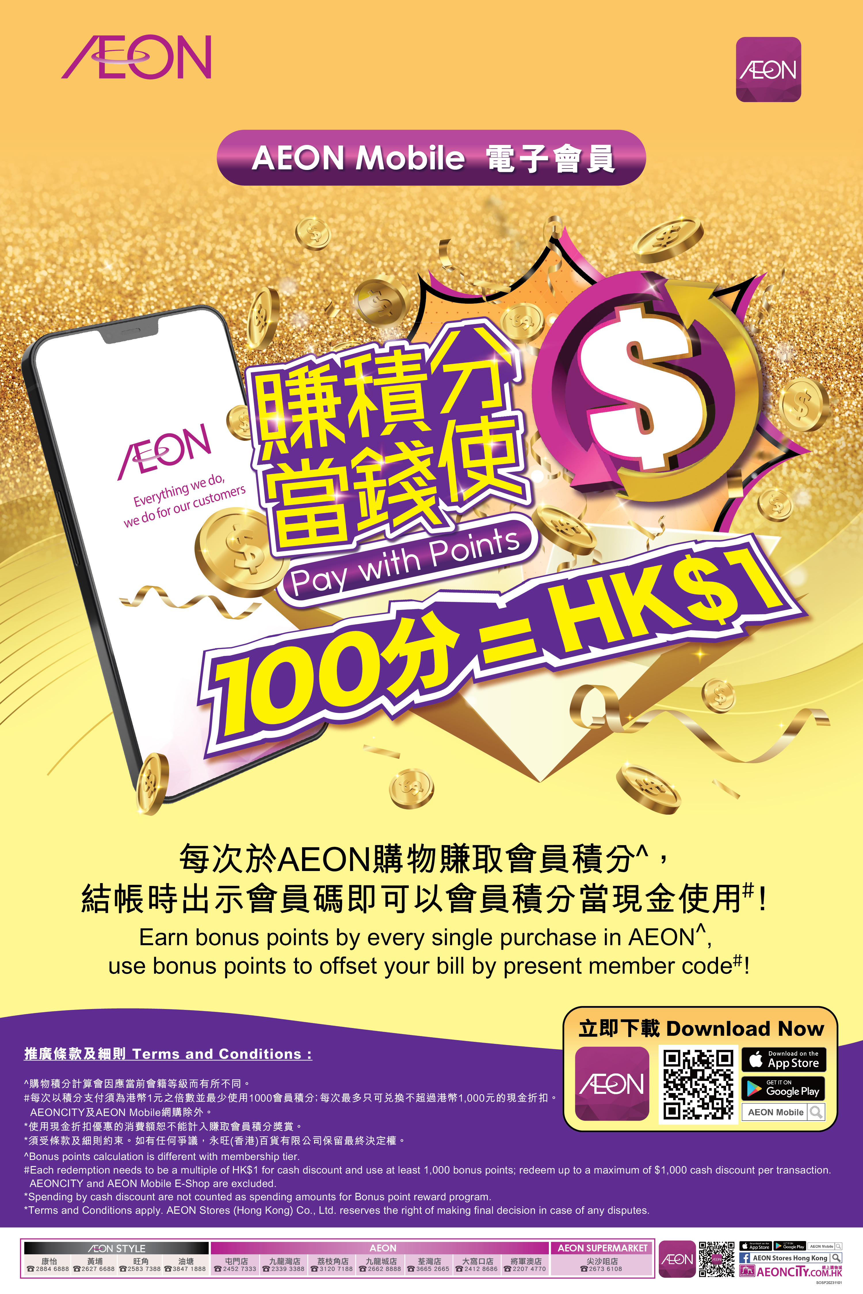 - AEONCITY网上购物城推出的购物平台 – AEON原箱店,订购货品直送府上,购物省时。24小时营业,手续方便,让您随时随地都能轻松网上购物!